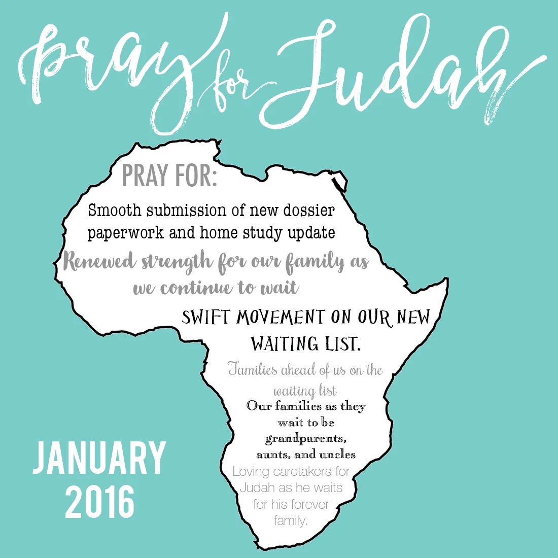 Please take a few moments to look at our prayer requests for this month. We so appreciate and covet your prayers each and every day as we wait.